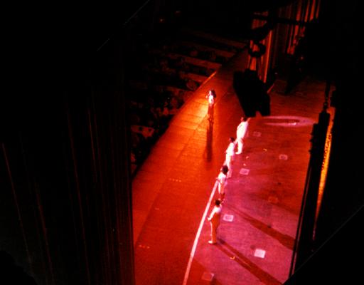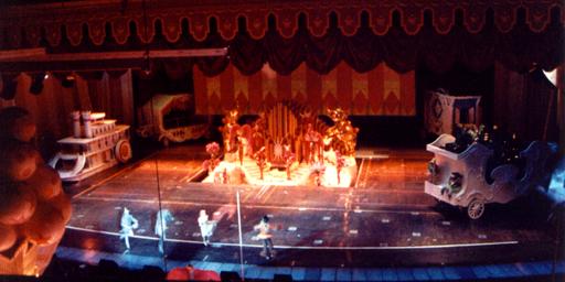 | Probably the coolest thing about working there was that everyone rotated positions, every night. Since the show had been running for ten years, the stagehands reduced on the job fatigue by working a different stage position every night. This was actually lots of fun, since the new guys got to work virtually every part of the stage. As a temp, one week I would get called in to cover for someone on stage right. The next week I would get to work up in the FlyRail, flying scenery in and out. | ||||||||